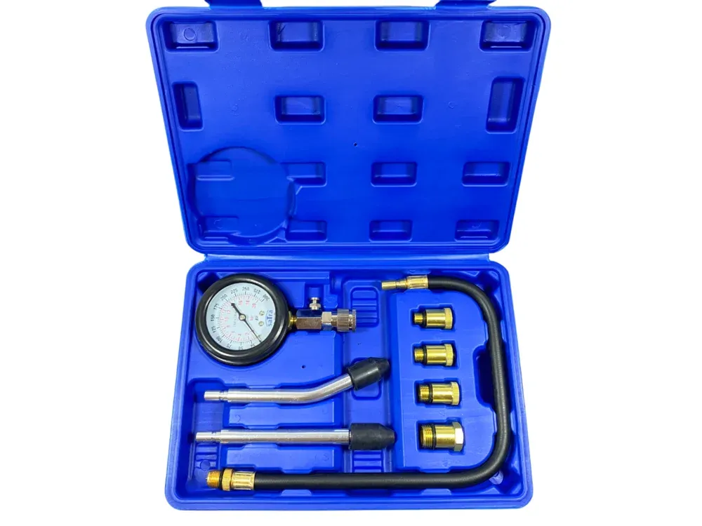 - Prüfgerät für Kompression von Motoren. Dies kann aus verschiedenen Gründen nötig sein, z.B. nach Motorarbeiten wie Zylinderkopfdichtungswechsel oder bei schlechtem Startverhalten, Leistungsverlust etc.